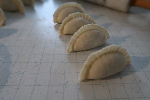 压制完饺子皮后,剩余的面皮边角料如果不想浪费掉,可以做成美味的面皮汤。
